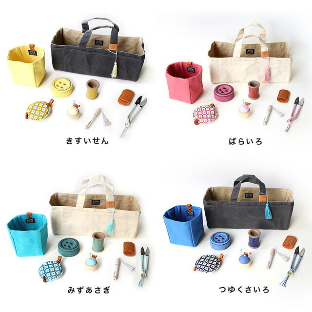 SPEC セット内容 ・帆布の道具入れ・帆布の小間物入れ ・南部鉄器の文ちん ・波佐見焼のマグネットスプール ・革友禅の巻尺 ・とんぼ玉の待針 (3本)・ヒノキのピンクッション ・手縫い針セット(計8本)・庄三郎 伊賀くみひもの糸切ばさみ サイズ(約) [道具入れ]横:270mm、高さ:100mm (持ち手込み:170mm) 、奥行:100mm[間物ポーチ]横:80mm、高さ:90mm、奥行:80mm[文ちん]Φ60mm×23mm[スプール]Φ35mm×46mm[巻尺]Φ65mm×15mm、巻尺の長さ:1.5m[待針]全長:33〜35mm、とんぼ玉:Φ5mm×太さ0.5mm(とんぼ玉の溶着によって針の長さが多少前後します。