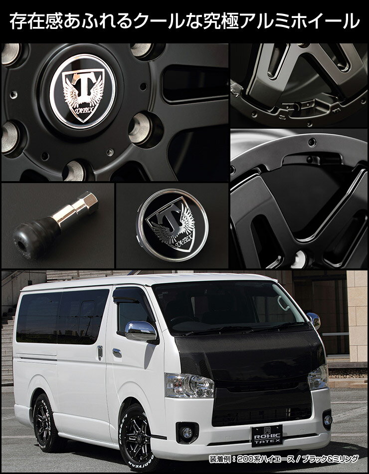 キーワード豊田,トヨタ,TOYOTA,ハイエース,HIACE,hiace,HIACE,hiace,200系,200系,ナスカー,グッドイヤー,トーヨー,ヨコハマ,TATEX,WHEEL,タテックス,タイヤホイル,アルミ,ホイール,交換,カーアクセサリ,メンテナンス,カードレスアップ,パーツ商品情報詳細内容商品名タテックス ホイール商品説明◎16インチナスカータイヤもマッチングする車検対応サイズの200系ハイエースアルミホイール!◆低圧鋳造1ピースホイール。